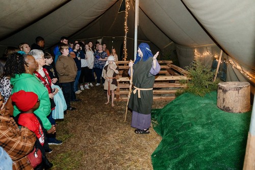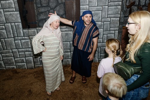 - As you enter the tent, you will encounter Shepherds telling the story of their encounter with angels announcing the birth of Jesus. Once they are done, they will encourage you to go into the city to see the baby yourself.