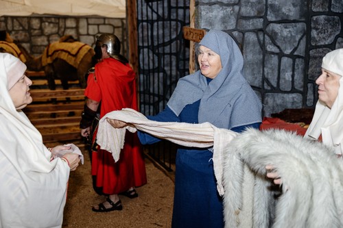 Marketplace is a FREE walk-through drama re-enacting how the village of Bethlehem might have appeared the morning after the birth of Jesus. Its atmosphere and surroundings are those of 2000 years ago. It features characters in historical costumes such as Roman soldiers, prisoners, tent makers, weavers, merchants in shops, census-takers, and more. Live camels and other animals lend authenticity to the re-enactment, and twenty-first century items do not appear.